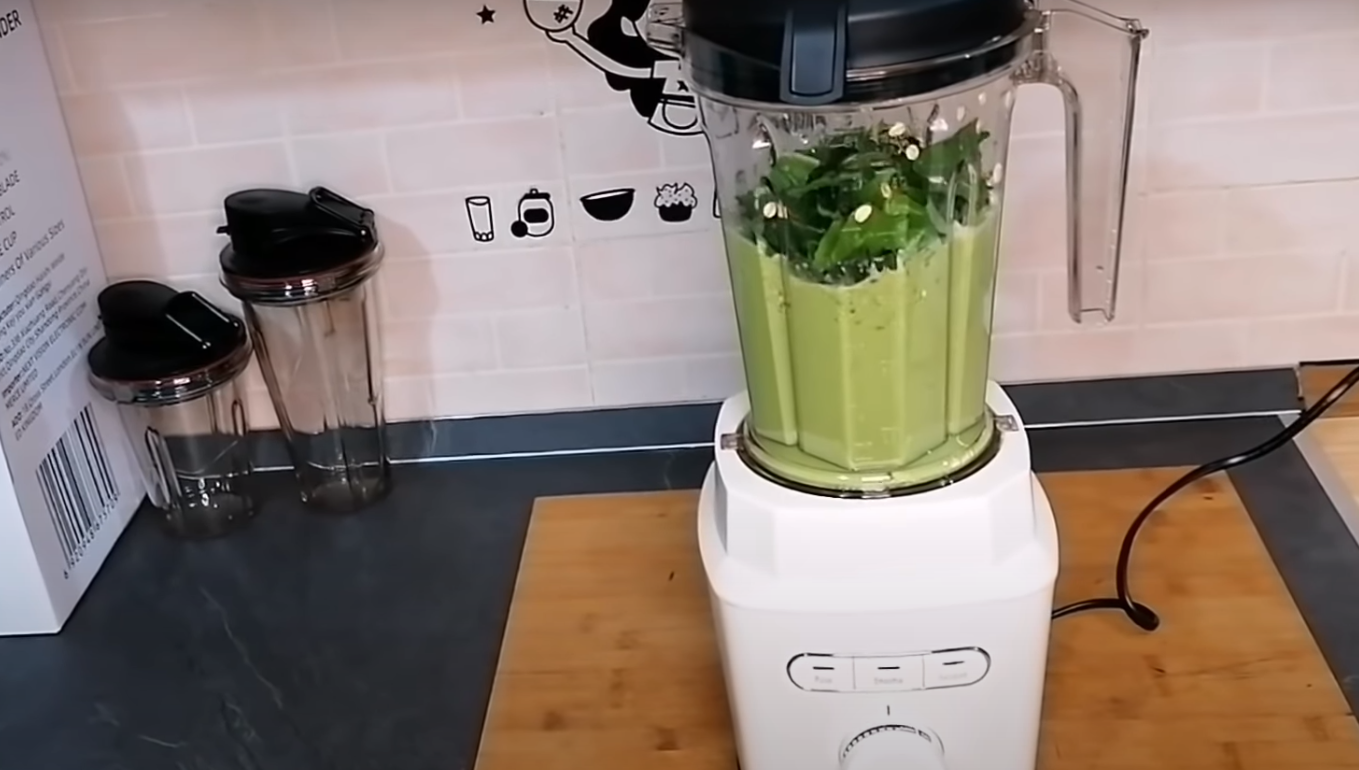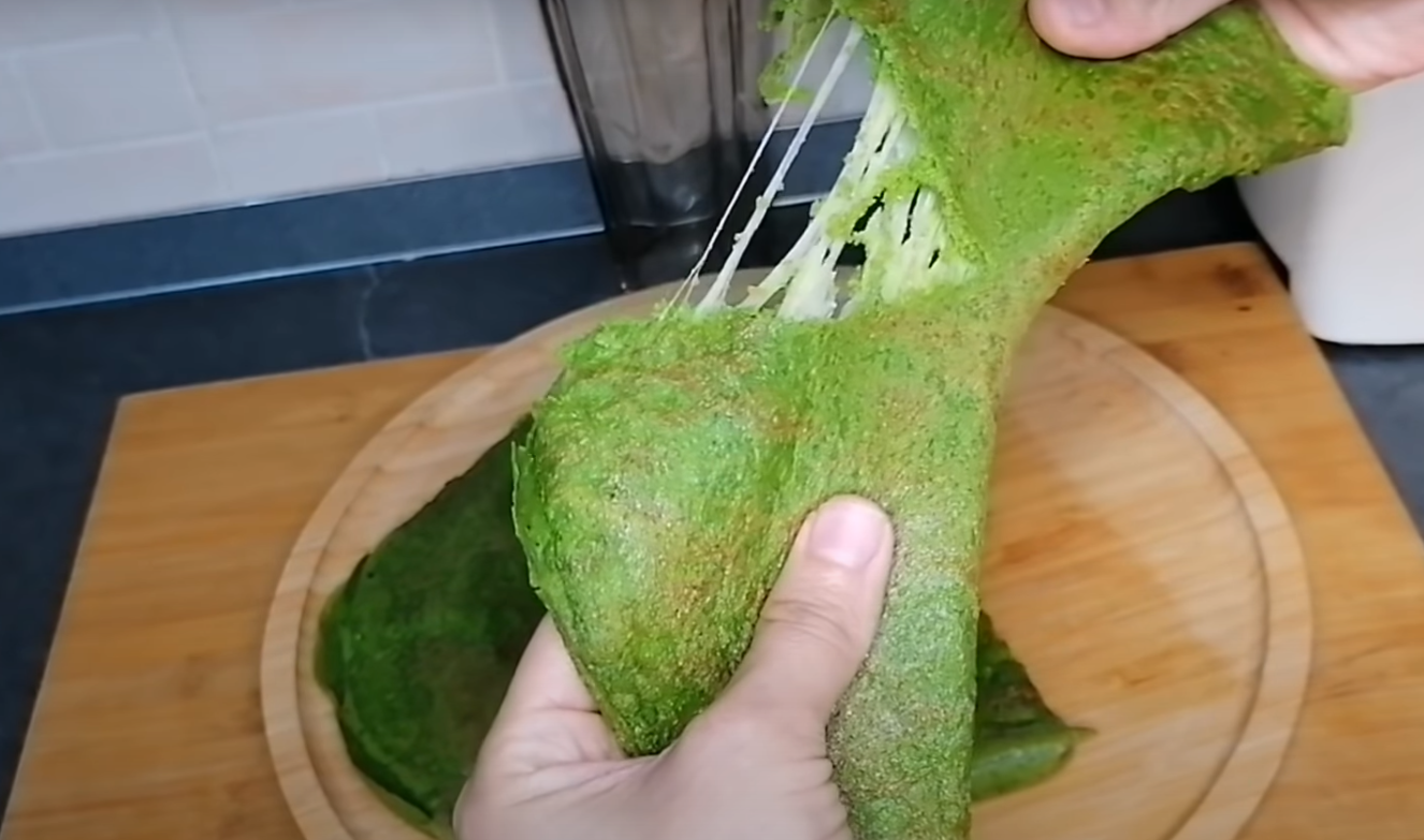 Po umyciu, liście szpinaku posiekaj na drobne kawałki i wrzuć do blendera. Dodaj tam również płatki owsiane, 2 jajka i dolej 200ml wody. Blenduj mieszaninę aż do uzyskania gładkiej masy.