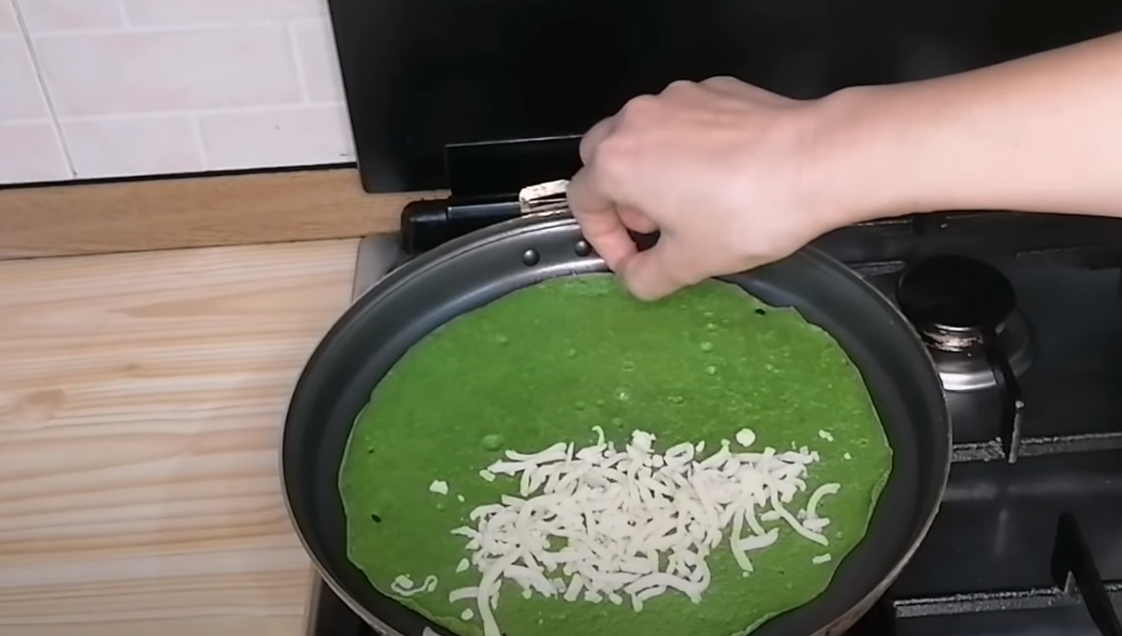 Odstaw powstałą masę na 30 minut. Po tym czasie, dodaj sól oraz pieprz. Następnie, dolej 2 łyżki oleju słonecznikowego i 200ml wody. Blenduj do całkowitego wymieszania składników. Teraz zetrzyj ser i rozgrzej patelnie. Powstałą w blenderze masę wlej do miski. Następnie, przy pomocy chochli nanoś ją na rozgrzaną patelnie.