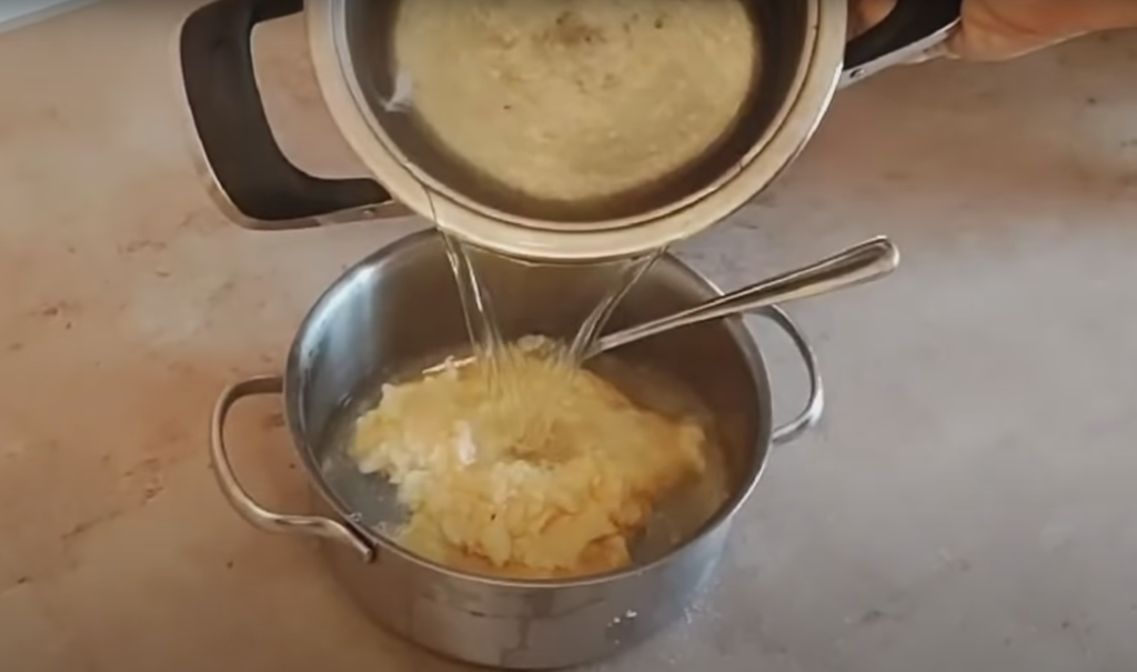 Otrzymaną pastę umieść w garnku i zalej gorącą (najlepiej wrzącą) wodą.