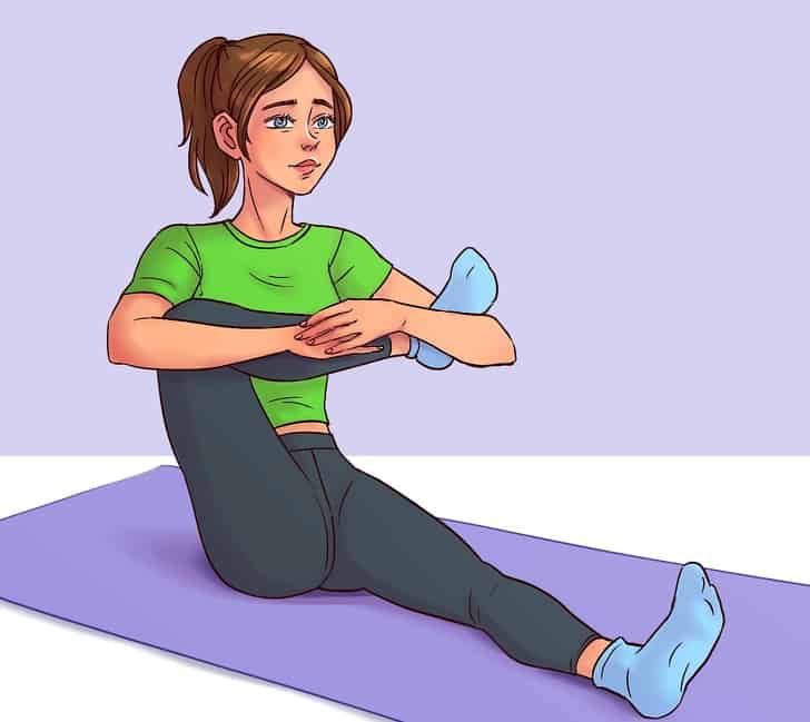 Usiądź na ziemi, prostując nogi. Pamiętaj również o wyprostowanych plecach. Pozwól lewej stopie leżeć w rozluźnieniu oraz podnieś zgiętą prawą stopę tak, by łydka stykała się z klatką piersiową. Chwyć łydkę obiema rękami. Powinieneś poczuć jak twoje mięśnie bioder napinają się. Wytrzymaj w tej pozycji 30-60 sekund, a następnie powtórz ćwiczenie, wykorzystując drugą stronę.