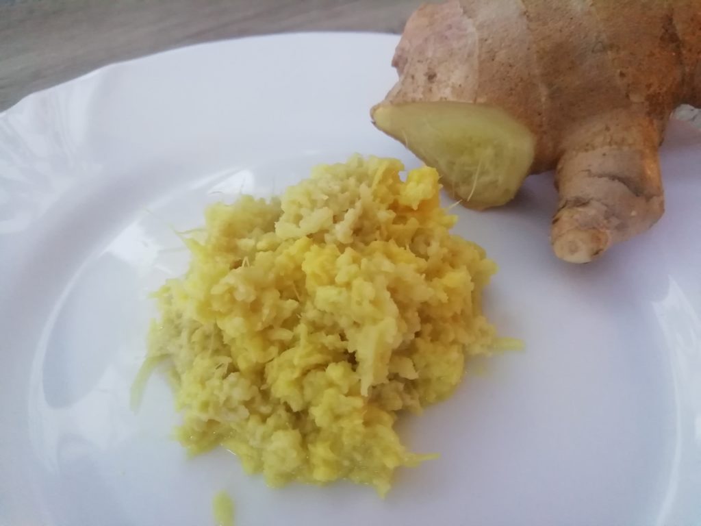 - Imbir obieramy, ścieramy na drobnej tarce.