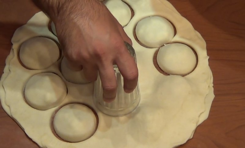 Jeśli pomidory byłyby zbyt blisko siebie, bułeczki nie mogłyby cię zamknąć. Teraz rozwałkowujemy drugą część ciasta i układamy na pierwszym, tak aby przykryć wszystkie pomidory.