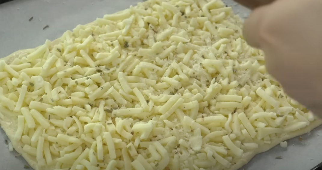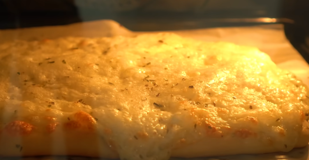 - Posmaruj ciasto przygotowanym sosem czosnkowym.
