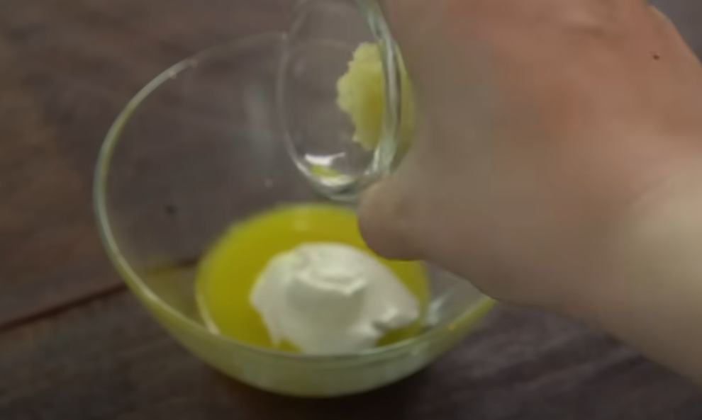 - W małej misce wymieszaj mielony czosnek, roztopione masło i serek śmietankowy, aż składniki dobrze się połączą.