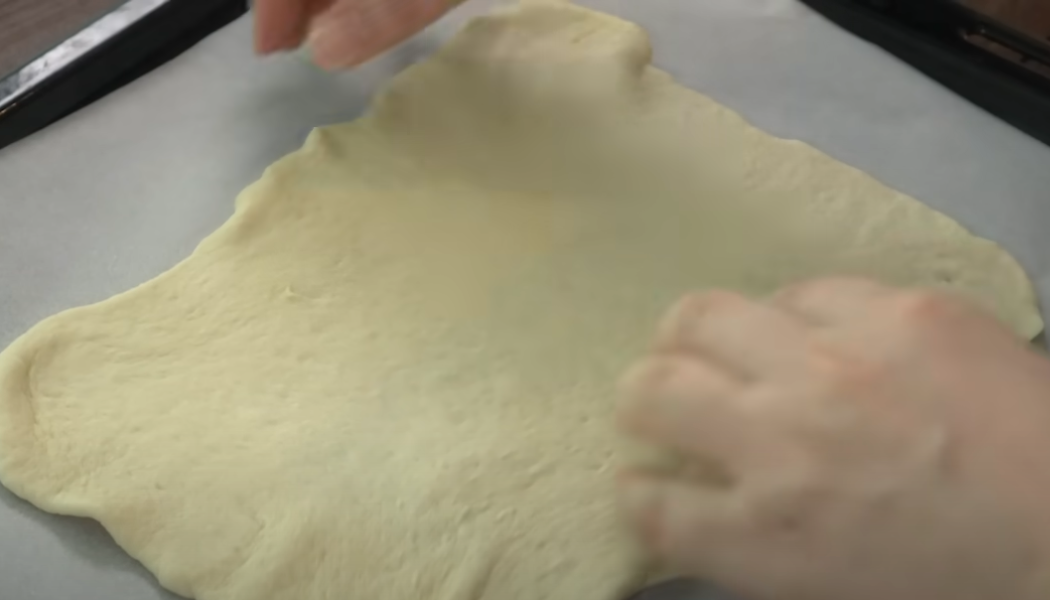 - Zwiń ciasto jak roladę i umieść na blasze wyłożonej papierem do pieczenia.