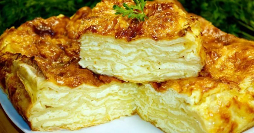 Ciasto ma różne kształty. Niektórzy smarują arkusze ciasta nadzieniem, po czym zwijają w rolki i rozprowadzają w okrągły kształt w formie spirali. Te same rolki można po prostu ułożyć obok siebie. Wybrałam najbardziej leniwą wersję bułgarskiej banitsy – arkusze złożyłam w stos i posmarowałam twarogiem.