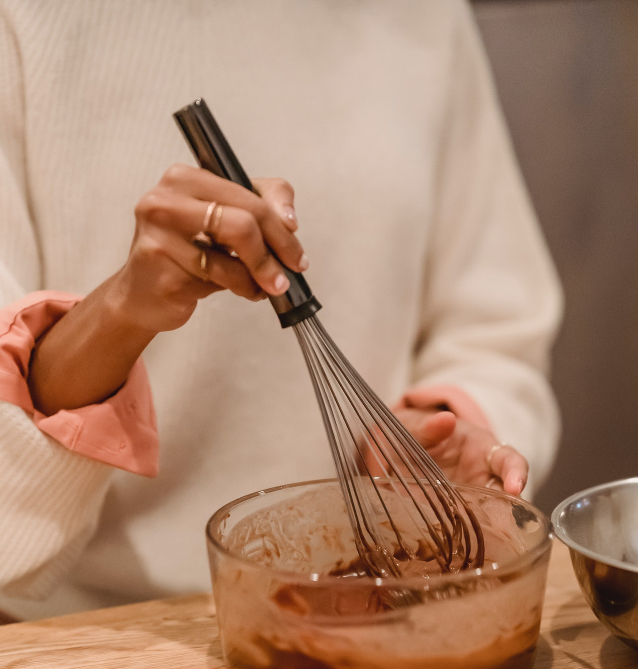 Dodaj mleko i olej, wymieszaj. Do ciasta dodajemy również startą czekoladę, kakao i przesianą mąkę. Wszystko dobrze miksujemy . Ciasto wylewamy na blachę wyłożoną papierem do pieczenia.