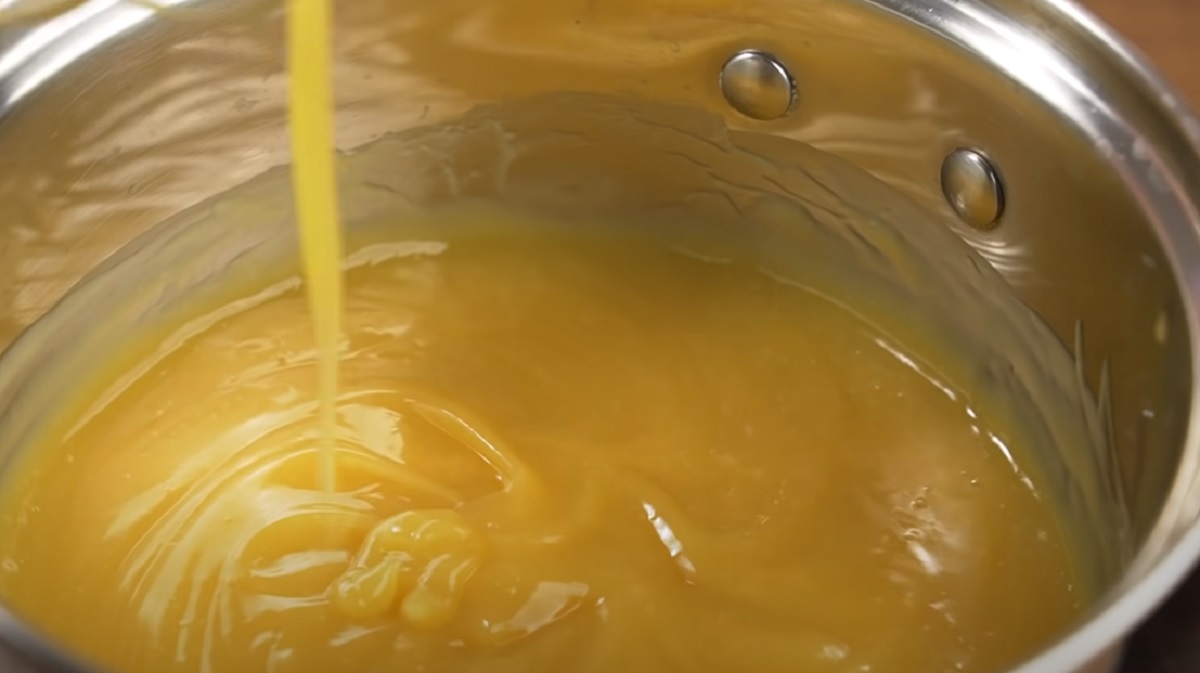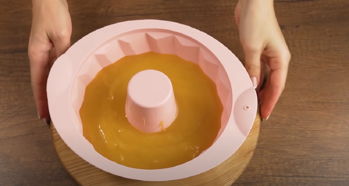 Tak powstałą masę gotuj przez około jedną minutę na mały ogniu, tak aby uzyskała odpowiednią gęstość. Przygotuj silikonową foremkę do ciasta. Gotową masę wlej do foremki i pozostaw do ostygnięcia. Odczekaj do momentu, w którym masa będzie mieć temperaturę pokojową.