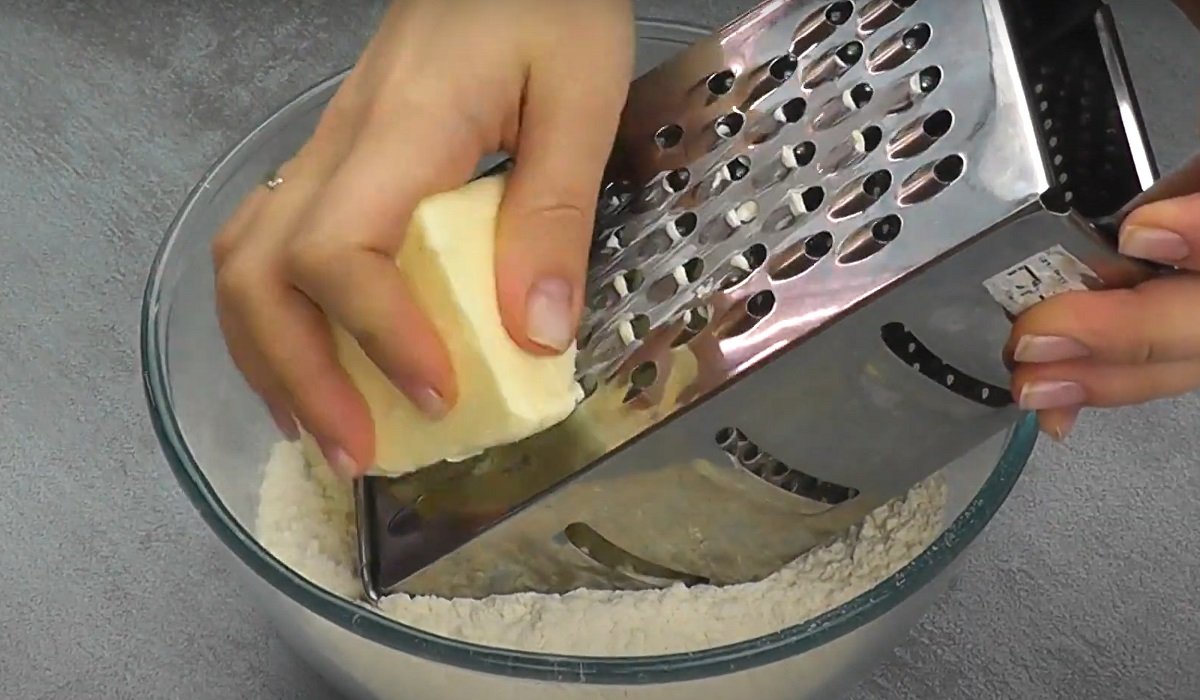 Zetrzyj zamrożoną margarynę lub masło i wymieszaj z mąką.