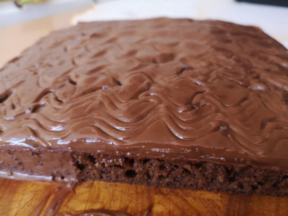 Najpierw parzymy filiżankę mocnej kawy rozpuszczalnej i pozwalamy jej ostygnąć. Wszystkie składniki na ciasto wkładamy do większej miski i ubijamy ręczną trzepaczką na gładką masę , którą wylewamy na wysmarowaną tłuszczem i posypaną mąką blachę do pieczenia.
