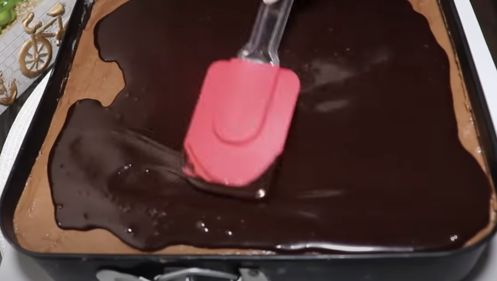 Gotuj, aż lukier zgęstnieje. Po wyjęciu z ognia pozostaw do ostygnięcia i polej na ciasto. Wstawić do lodówki na co najmniej 2 godziny do zestalenia.