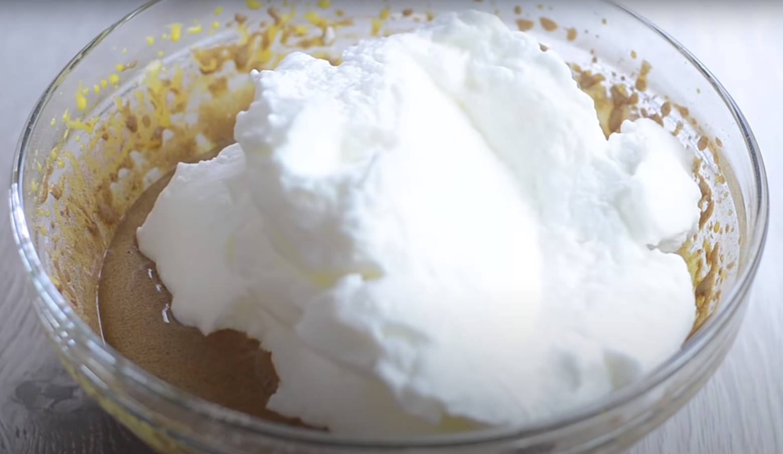 Następnie przygotuj ciasto. Mąkę połącz w misce z proszkiem do pieczenia. Dodaj kakao. W osobnej misce ubij białka na sztywną pianę. W trzecim naczyniu ubij żółtka z dodatkiem cukru. Dodaj do nich letnią wodę oraz mieszankę mąki z kakao i proszkiem do pieczenia. Wymieszaj dokładnie i dodaj pianę z białek.
