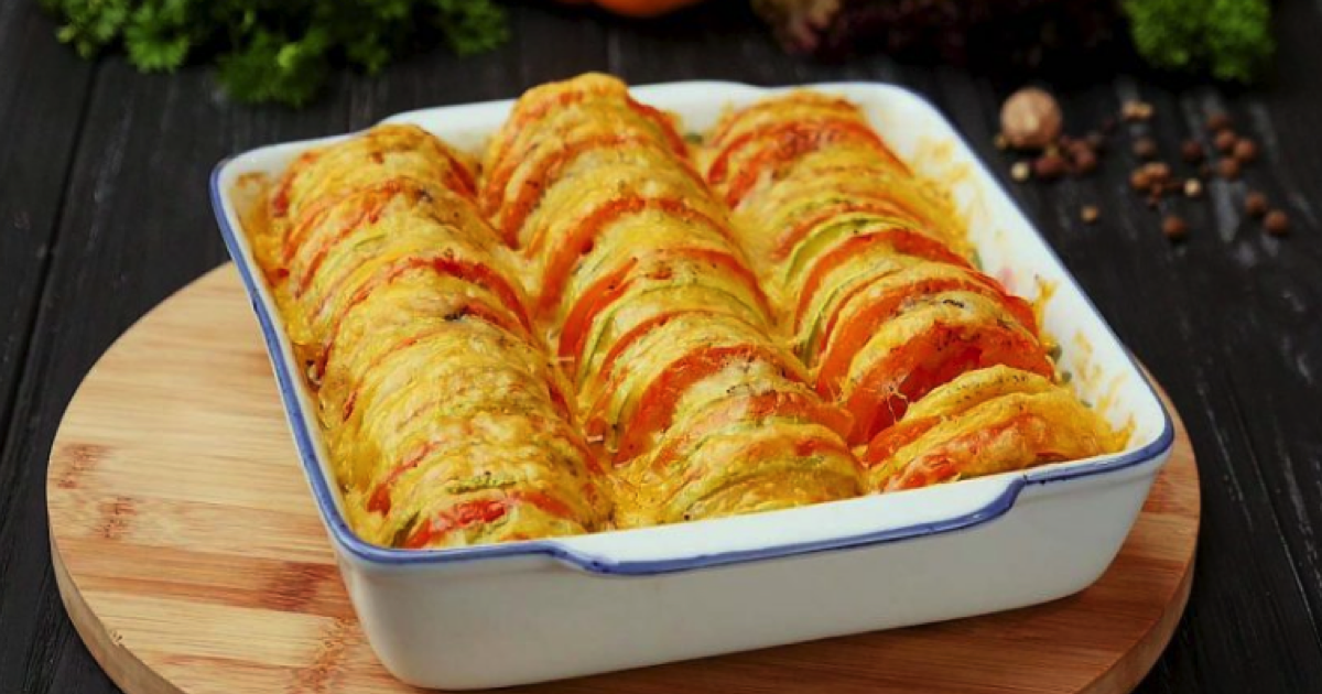 Koniecznie zapisz ten przepis: Pyszna cukinia zapiekana z pomidorami – idealna kolacja.