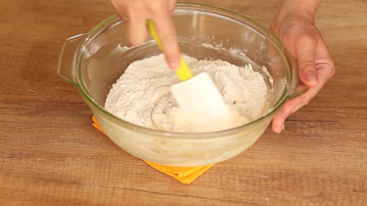 Mąkę przesiej i stopniowo dodawaj do płynnej mieszanki, ciągle mieszając ciasto. Powinna być miękka i elastyczna.