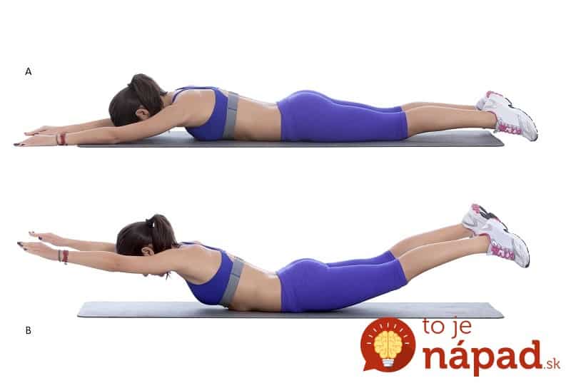 Ta nazwa ćwiczenia pochodzi od pozycji przypominającej latającego z płaszczem superbohatera. Połóż się na macie, wyciągając nogi za sobą, a ręce przed sobą. Unieś jednocześnie nogi i ręce, trzymając je proste. Przytrzymaj przez około trzy sekundy, a następnie powtórz dziesięć razy.