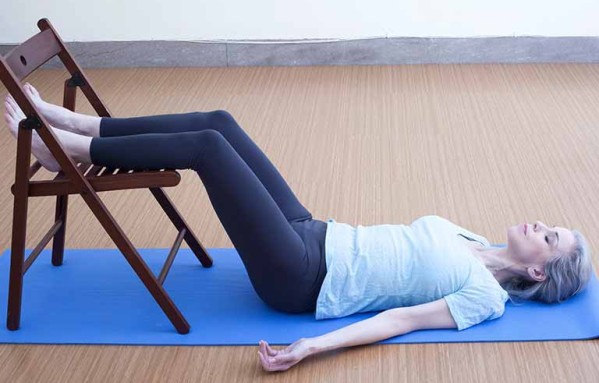 To ćwiczenie pomaga w rozluźnieniu mięśni pleców oraz wzmocnieniu mięśni brzucha. Należy położyć się na plecach, zgiąć nogi w kolanach i przyciągnąć je do klatki piersiowej. Utrzymujemy tę pozycję przez kilka sekund i powtarzamy ćwiczenie.