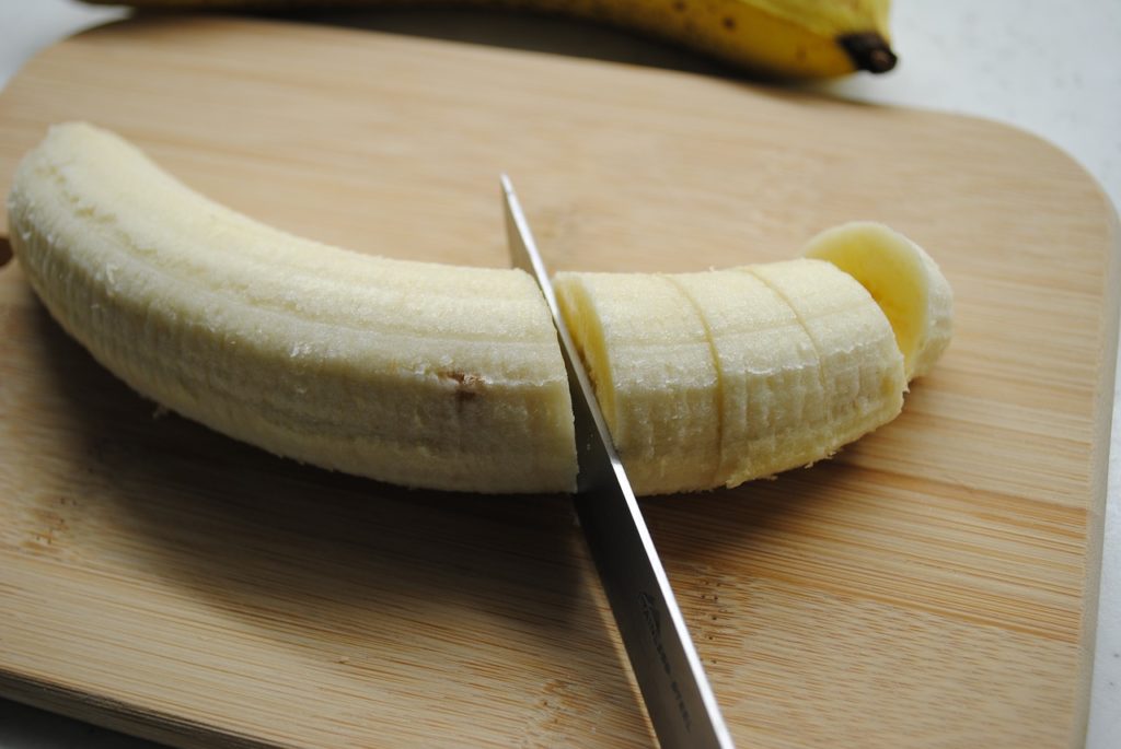 Pozdrów następnie swojego dojrzałego kompana – banana! Obierz go, pokrój w krążki i zaproś do towarzystwa truskawek.