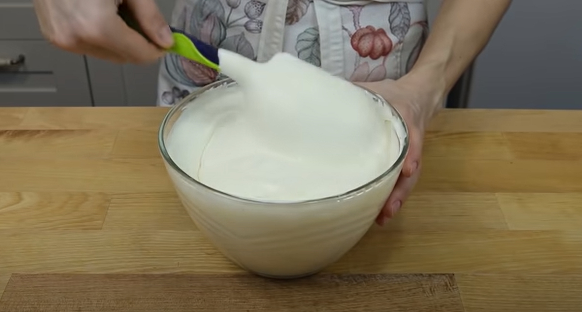 Wmieszaj żelatynę z woda i pozostaw by spęczniała. Ze śmietany i wanilii ubij pianę o gęstej konsystencji. Schowaj ją do lodówki w celu schłodzenia.