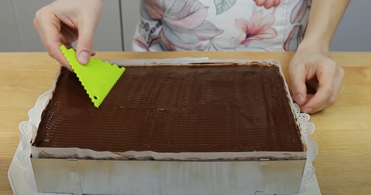 Białą czekoladę pokrusz i polej ją podgrzanym, ale nie zagotowanym mlekiem. Poczekaj około minuty i wymieszaj całość aż się połączy. Następnie dodaj miód i ponownie wymieszaj. Dodaj żelatynę. Gdy masa czekoladowa z żelatyną ostygną dodawaj porcjami bitą śmietanę i połącz a gładką całość.