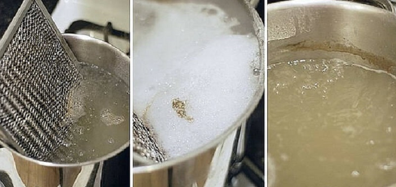 Jeżeli na twojej klatce grillowej osadziła się sadza lub tłuszcz, spróbuj zamoczyć ją w roztworze przygotowanym z 4 łyżek soli, 3 łyżeczek kwasku cytrynowego oraz litra wody. Jeżeli uporczywy brud nie zejdzie, spróbuj zagotować kratkę w tej mieszaninie.
