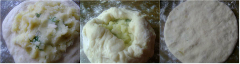 W tym celu po rozwałkowaniu placuszków ułóż na ich środku dowolny farsz, następnie połącz boki i lekko spłaszcz dłonią. Placuszki z nadzieniem należy smażyć kilka minut dłużej, ale są tego warte.