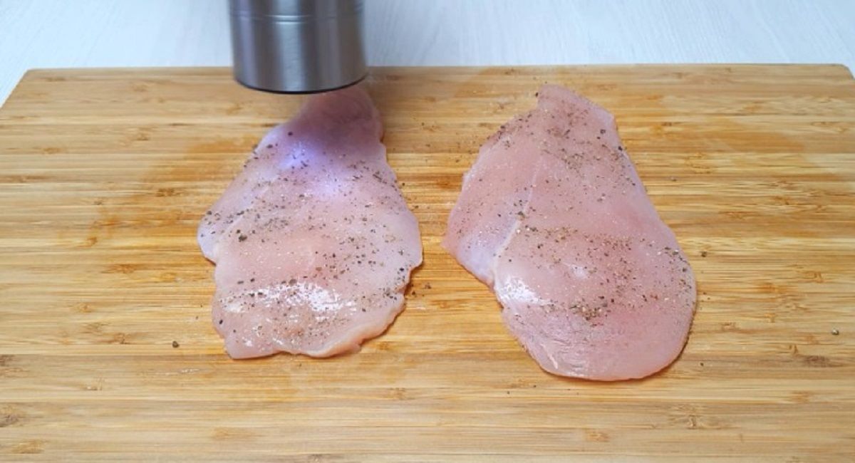 Każdy z kawałków mięsa przekrój wzdłuż i przykryj folią spożywczą.