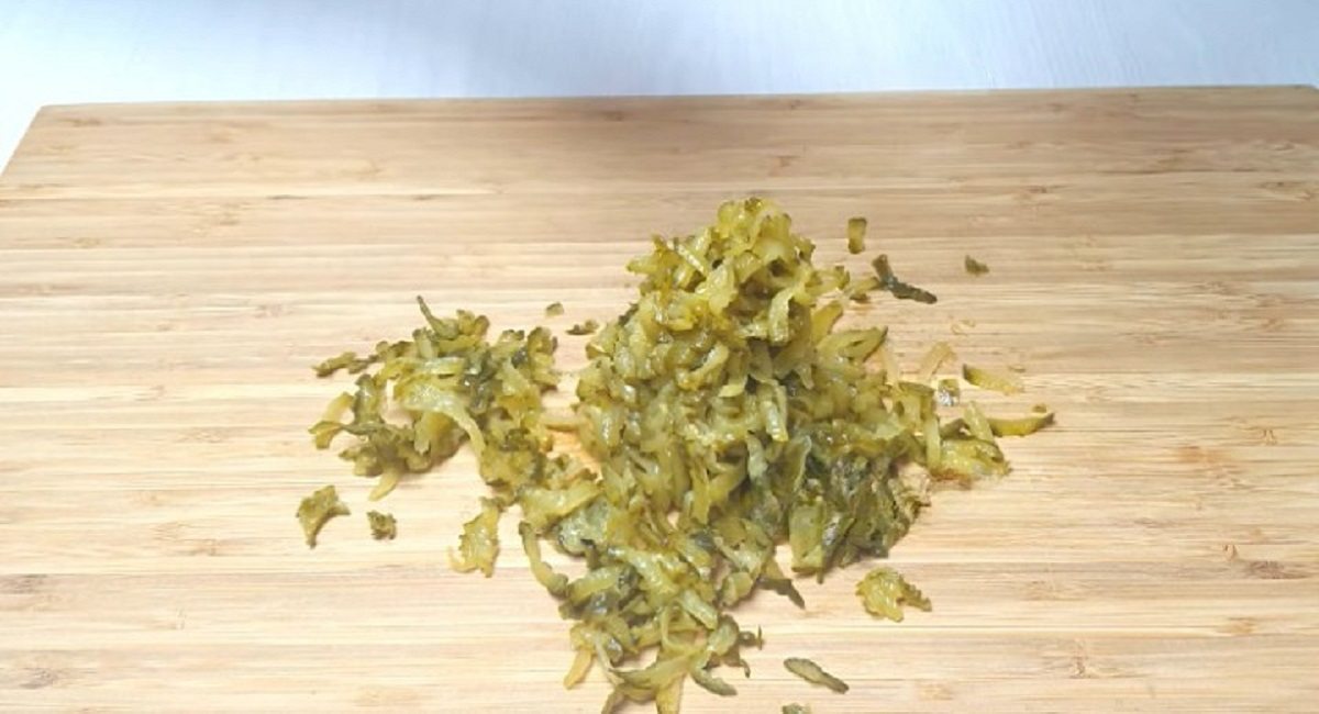 Pokrój warzywa – cebulę na krążki i następnie na ćwiartki, a marchewkę i ogórki konserwowe zetrzyj na tarce o grubych oczkach.