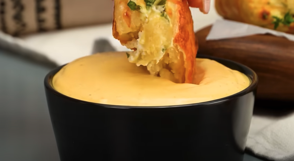 W misce wymieszaj 1 jajko, 10 ml octu, 10 g sosu chili, 10 g ketchupu, 8 g soli, 4 g czarnego pieprzu i 150 ml oleju roślinnego, aż do uzyskania gładkiej konsystencji. Podawaj ciepłe ciasto francuskie z przygotowanym sosem. Możesz je również udekorować świeżą pietruszką.