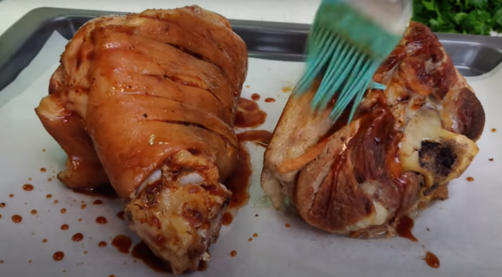 Upieczone golonki polej marynatą i możesz podawać na stół.