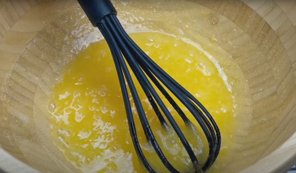 Jajka wbij do miski, dodaj cukier, cukier waniliowy i ubij trzepaczką.