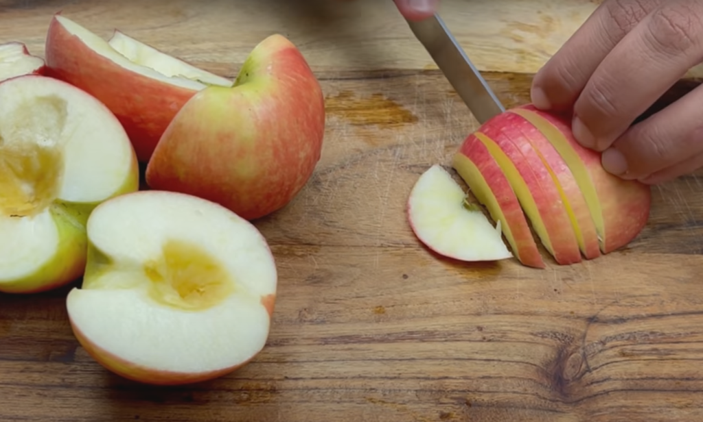 Umyj jabłka, pozbądź się z nich pestek i pokrój w cienkie plasterki.