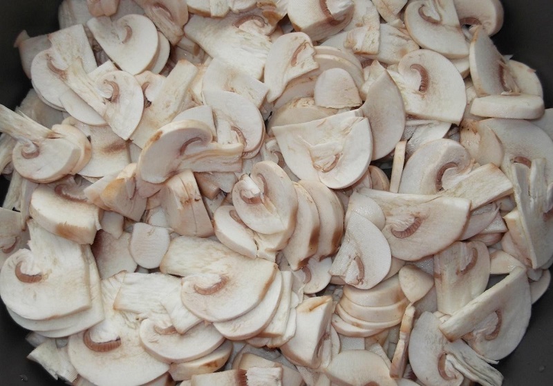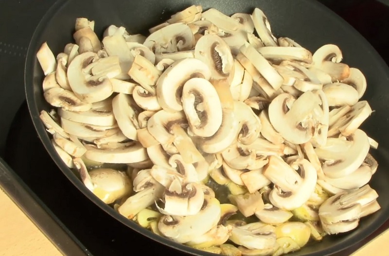 W przepisie podane są pieczarki, ponieważ wyglądają bardzo apetycznie oraz nie tracą swojego smaku, ale można je zastąpić innymi grzybami na przykład mniejszymi i zrezygnować z krojenia ich. Smacznego!