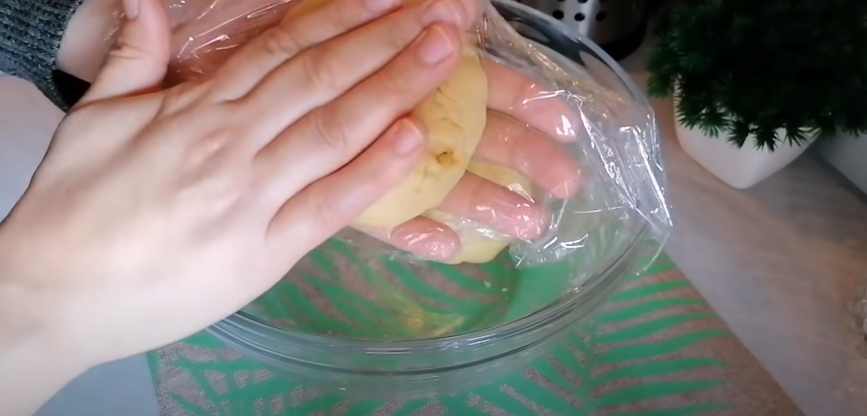 Podziel ciasto na dwie równe porcje, zawiń każdą z nich w folię spożywczą i włóż do zamrażarki do czasu zastygnięcia (0,5 godziny).