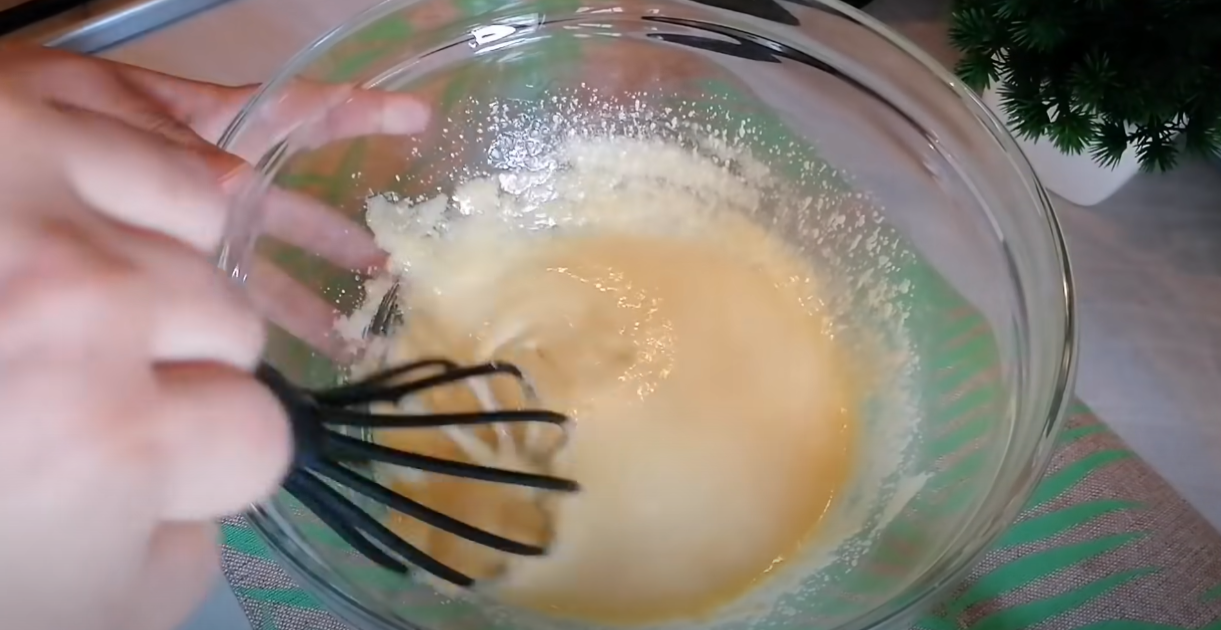 W dużej misce lub innym głębokim naczyniu wymieszaj cukier z 2 żółtkami.