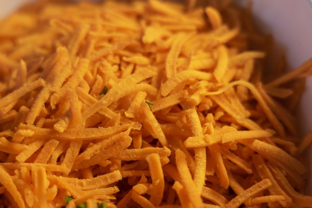 Cebulę myjemy i drobno kroimy. Dodaj do posiekanej kapusty. Marchewki myjemy i ścieramy – dodajemy do cebuli i kapusty.