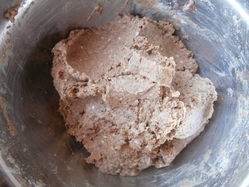 Do mieszanki przesiej mąkę żytnią. Wyrabiaj ciasto rękami lub mikserem planetarnym z hakiem do ugniatania chleba. Ciasto powinno być jednolite i nieco klejące się. Piekarnik rozgrzej do 180 stopni. Foremkę do pieczenia wyłóż pergaminem, przenieś do niej ciasto i piecz przez 40- 60 minut.