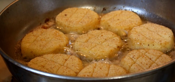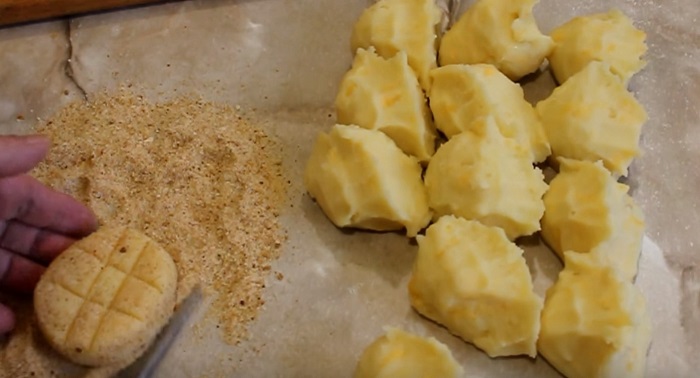 Następnie wymieszajmy wszystko bardzo dokładnie. Z takiego ciasta zacznijmy formułować małe kotleciki. Otoczmy je w bułce tartej i zróbmy na nich drobne nacięcia w kształcie kratownicy.