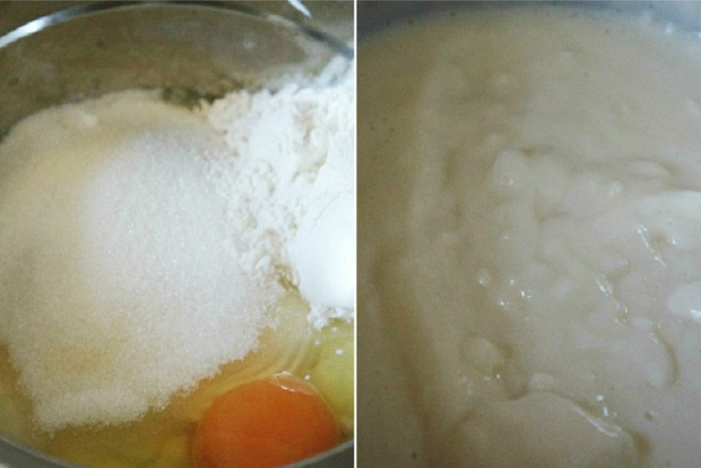 W tym czasie śmietanę możesz wymieszać z cukrem oraz jajkiem. Dodaj do całości mąkę i wanilię.