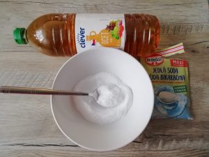 Zetrzyj mydło na płatki, a następnie rozpuść w garnku z wodą, uzyskując jednolitą konsystencję. Przelej roztwór do miski, dodaj ocet i wymieszaj. Zanurz palniki w roztworze na 30 minut.