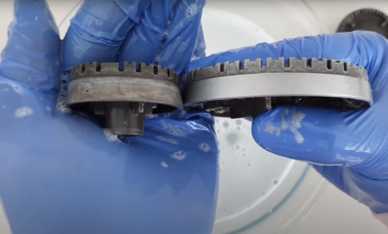 Gdy pianka opadnie, wyjmij palniki z miski. Nałóż niewielką ilość pasty do zębów na ściereczkę do czyszczenia. Wyszoruj każdy palnik do czysta.