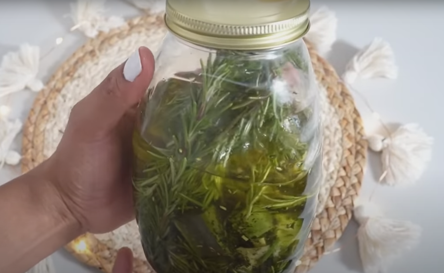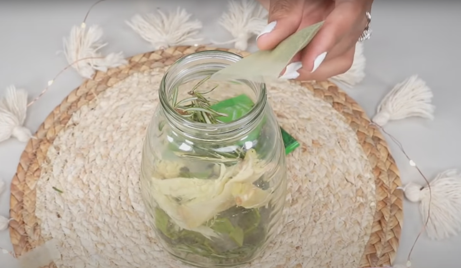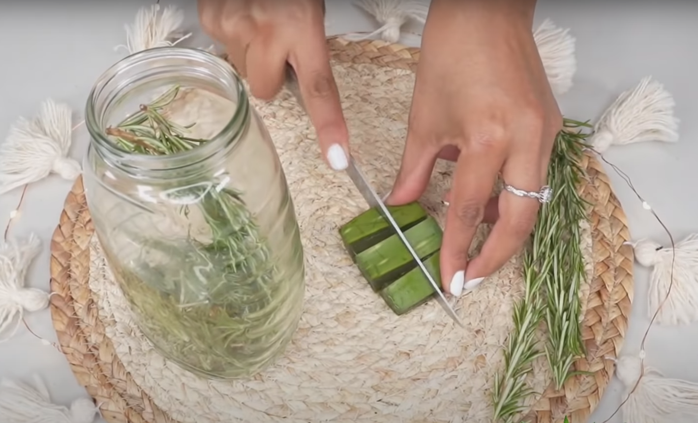 Rozmaryn i pokrojony aloes umieść w słoiku.