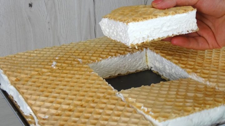 Nałóż gotowy krem na zakupiony arkusz waflowy. Wskazane jest, aby umieścić go w odpowiednio dużej formie. Następnie przykryj drugim arkuszem wafla i włóż do zamrażarki na co najmniej 2 godziny, krem musi całkowicie zamarznąć. Następnie możesz porcjować lody i podawać. Smacznego!
