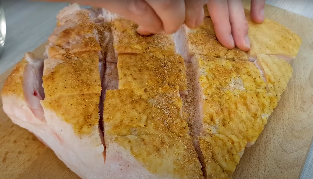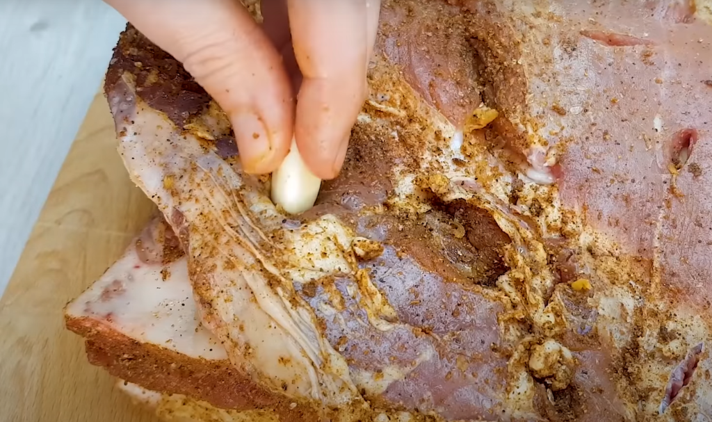 Zrób kilka nacięć, w które wkładamy ząbki czosnku.