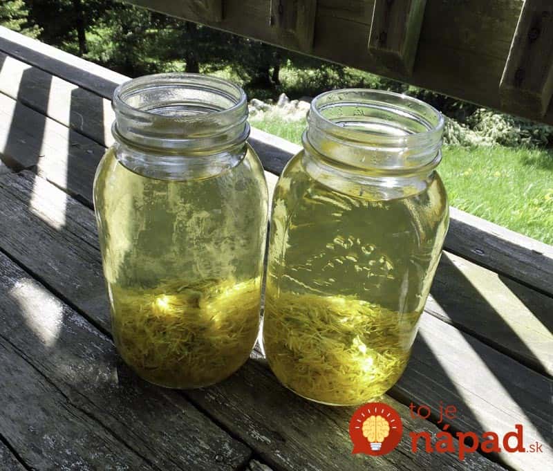 Syrop z mniszka lekarskiego, przygotowywany bez gotowania, składa się z 1 litra główek mniszka lekarskiego, 500 g cukru i 2 l wody.