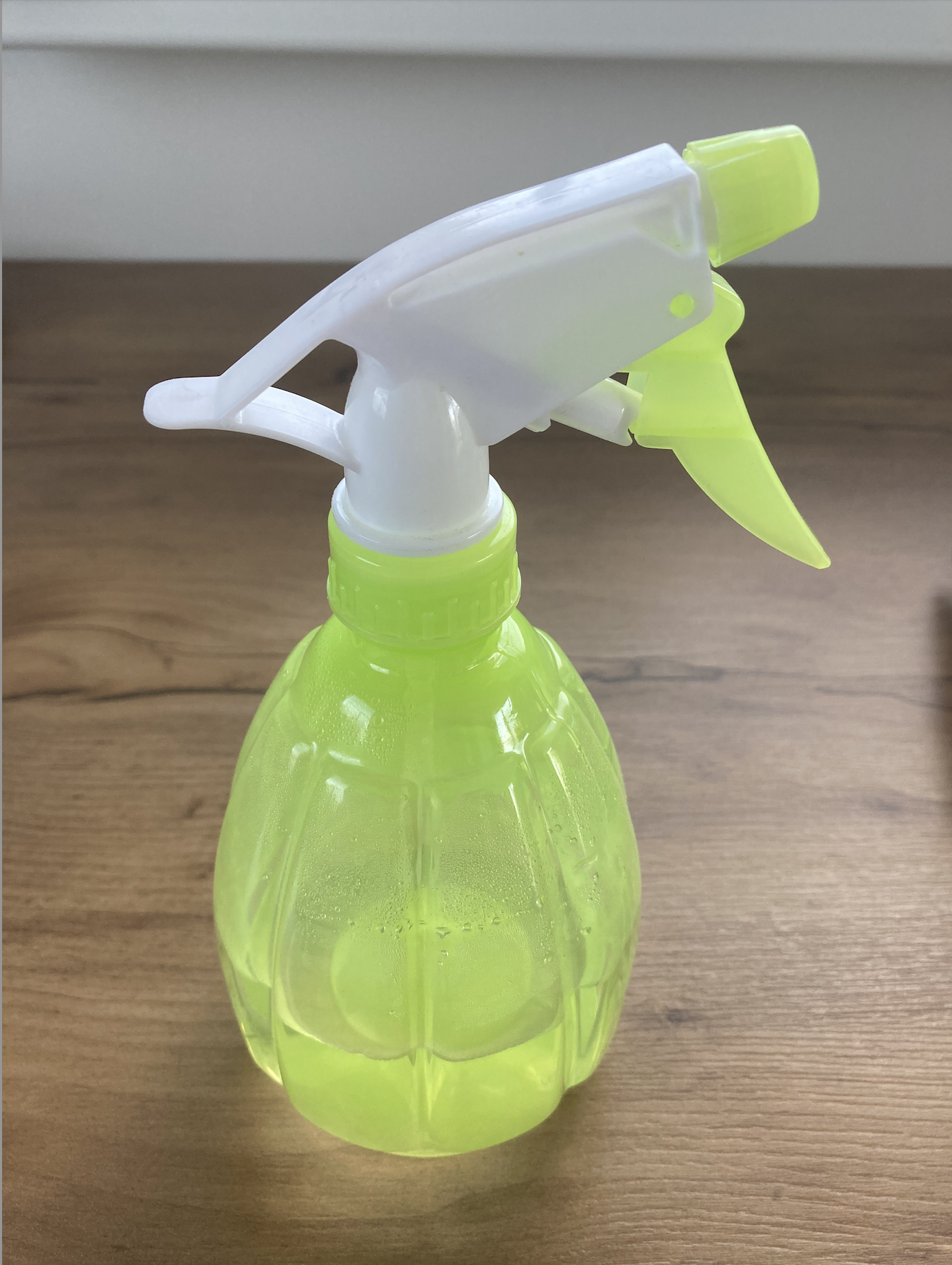 Wszystkie składniki umieszczamy w spryskiwaczu (może to być przykładowo butelka po płynie do okien). Składniki ze sobą dobrze mieszamy – możemy to zrobić ręcznie, używając patyka lub wstrząsnąć butelką kilka razy, aż składniki się dobrze ze sobą wymieszają.