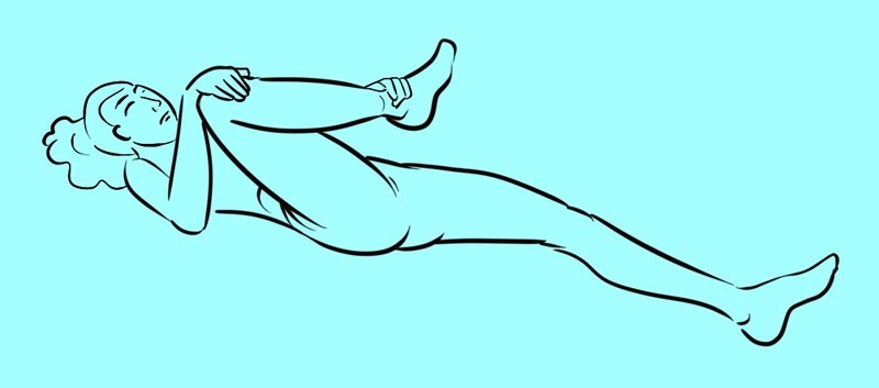 Znajdź równą, płaską powierzchnię i połóż się na niej. Następnie zegnij nogę, przytrzymaj ją obiema rękami i kieruj powoli do klatki piersiowej. Utrzymuj nogę jak najbliżej klatki przez 30 sekund. Opuść powoli stopę do pierwotnej pozycji i powtórz ćwiczenie dwa razy.