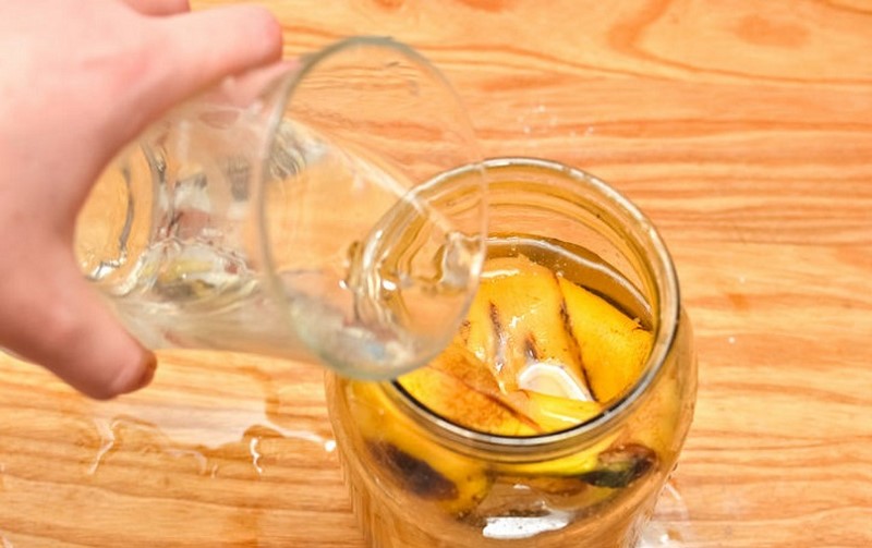 Skórkę z 2 bananów zalać 2 litrami wody i odstawić na 2 dni. Przez gaz przecedzić substancję i rozcieńczyć z wodą w stosunku 1:1, a potem podlać tym korzenie. Skórką z banana można pocierać liście, dzięki czemu będą nie tylko lśniące, ale również będą wchłaniać przydatne substancje.