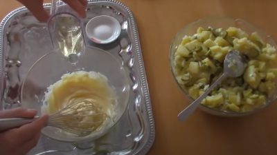 Jeśli należysz do miłośników sałatki ziemniaczanej, z pewnością przypadnie Ci do gustu jej odmiana w postaci niemieckiej sałatki ziemniaczanej z dressingiem musztardowym. Sałatkę można podawać z mięsem, ale świetnie smakuje też sama jako mała przekąska.