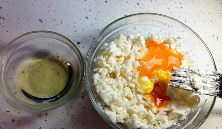Każdy z placków potnij na równe trójkąty. Ser wymieszaj z solą i pieprzem (twaróg możesz wcześniej ugnieść widelcem)
