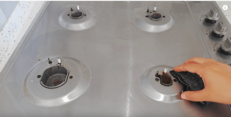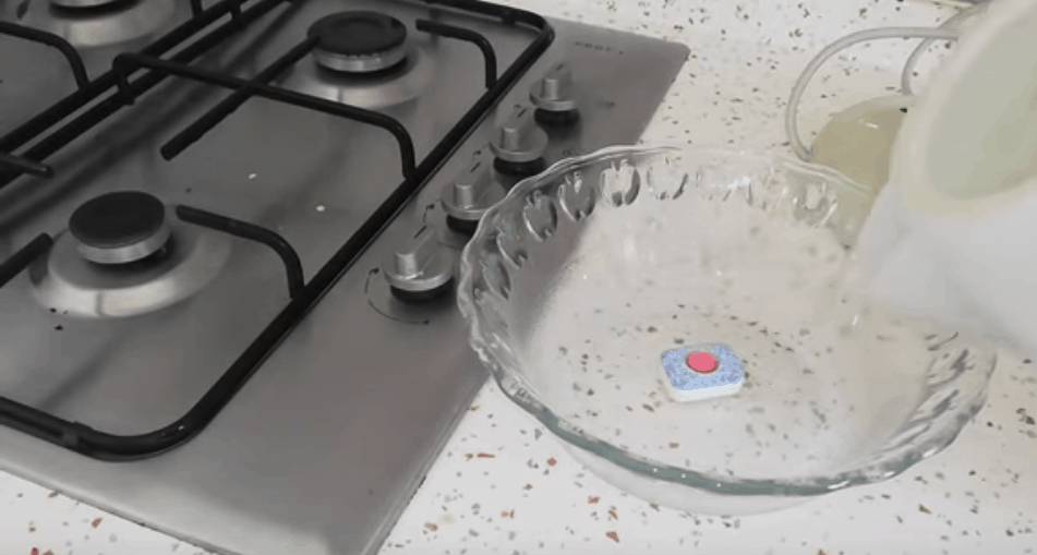 Najpierw zdejmij kratkę i palniki. Potem rozpuść tabletę do zmywarki we wrzątku, aby uzyskać mieszaninę czyszczącą.